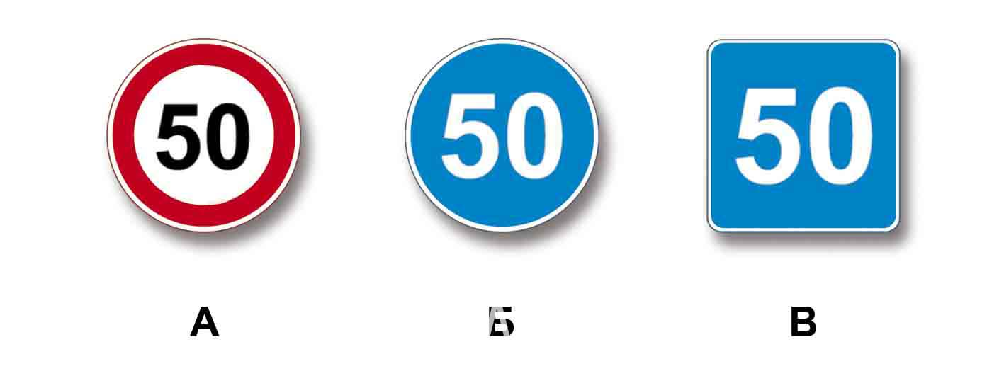 Из показанных знаков лишь один — 3.24 «Ограничение максимальной скорости» (знак А) — запрещает движение со скоростью, превышающей указанную на знаке, т.