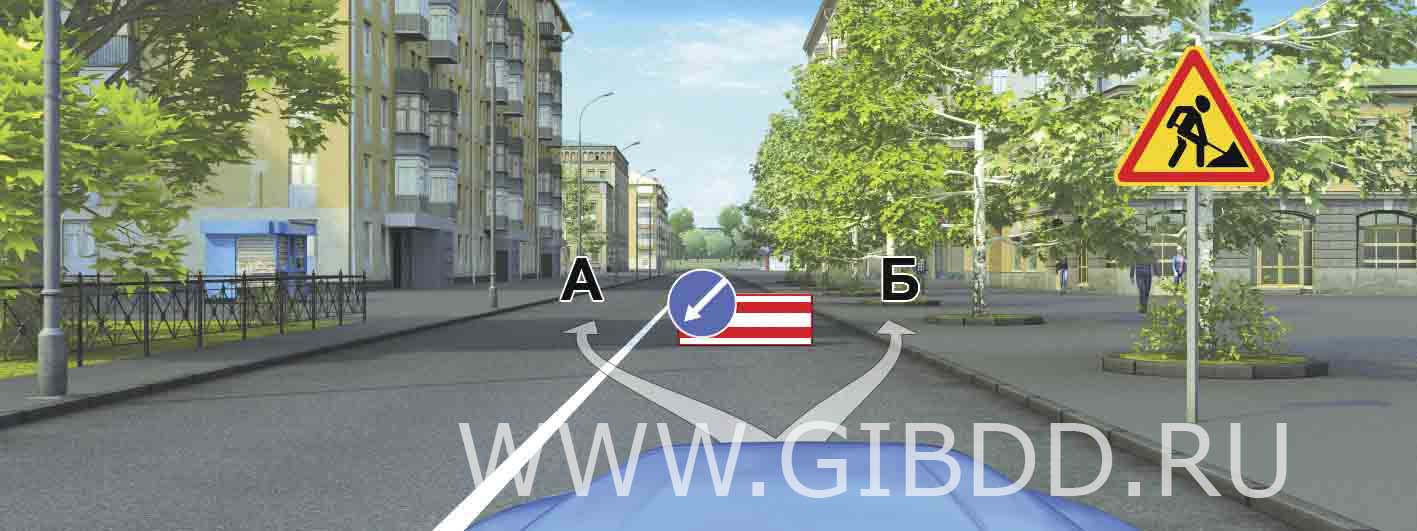 Дорожный знак 4.2.2 «Объезд препятствия слева» разрешает Вам пересечь линию разметки 1.1 и объехать препятствие только по траектории А. В случаях, когда значения дорожных знаков и линий горизонтальной разметки противоречат друг другу, водители должны руководствоваться дорожными знаками.