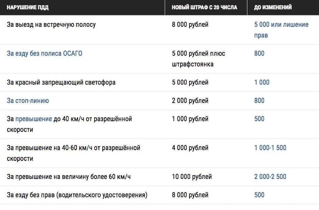 | Нарушение | Новое наказание (с сентября 2019 г.) | Старое наказание | ||