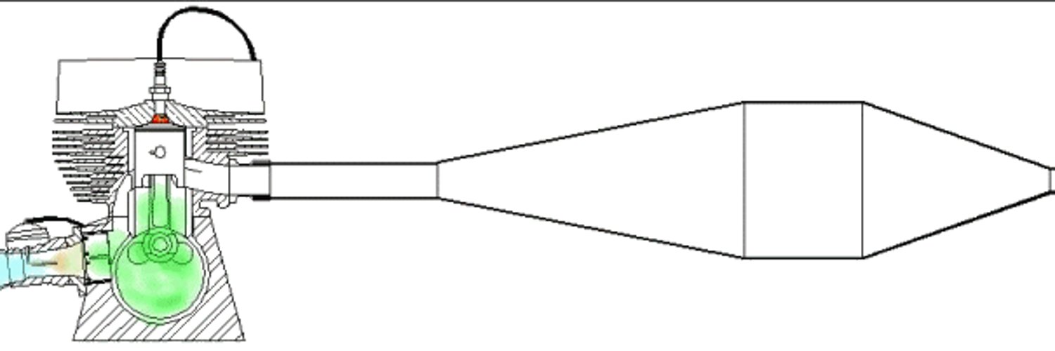 Там нет клапанов, распределительных валов и т. д., только поршень, соединенный шатуном с коленчатым валом. Смазка достигается путем смешивания масла с топливом, после чего полученная смесь омывает все движущиеся части.Однако полный цикл занимает только один ход поршня вверх и один ход вниз, поэтому некоторые элементы четырех фаз работы должны происходить одновременно.