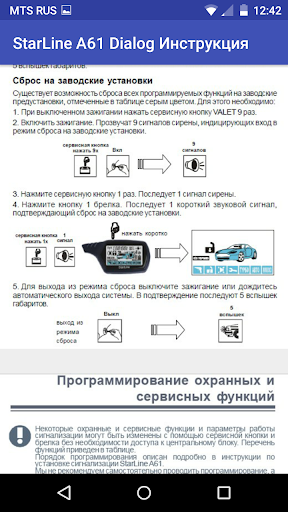 Полный список функций сигнализации Star Line a91, описанных в руководстве, включает более 20 позиций.