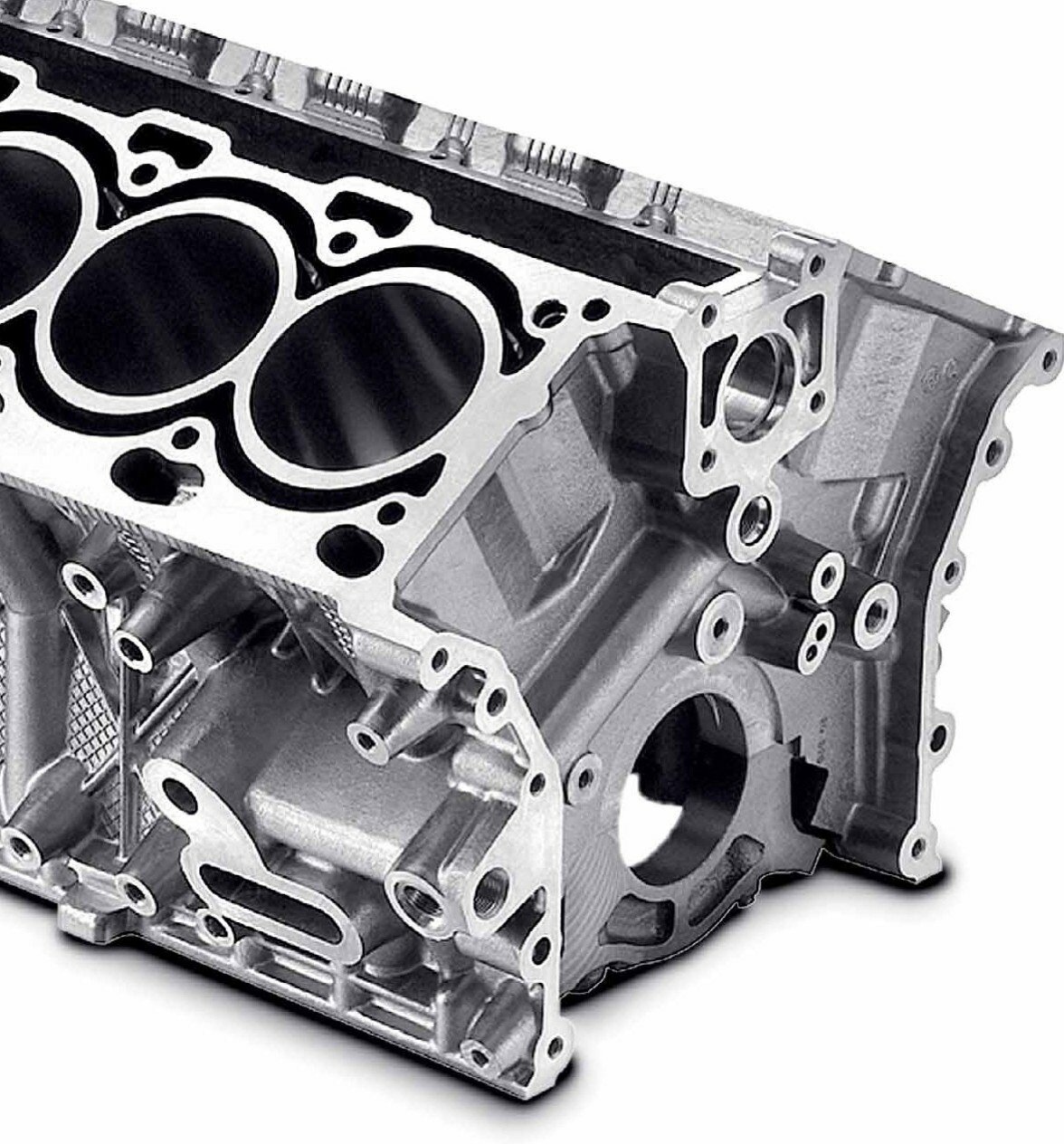 Блок цилиндров отлит из алюминиевого сплава по методу Open-Deck со свободно стоящей в верхней части блока единой отливкой цилиндров.