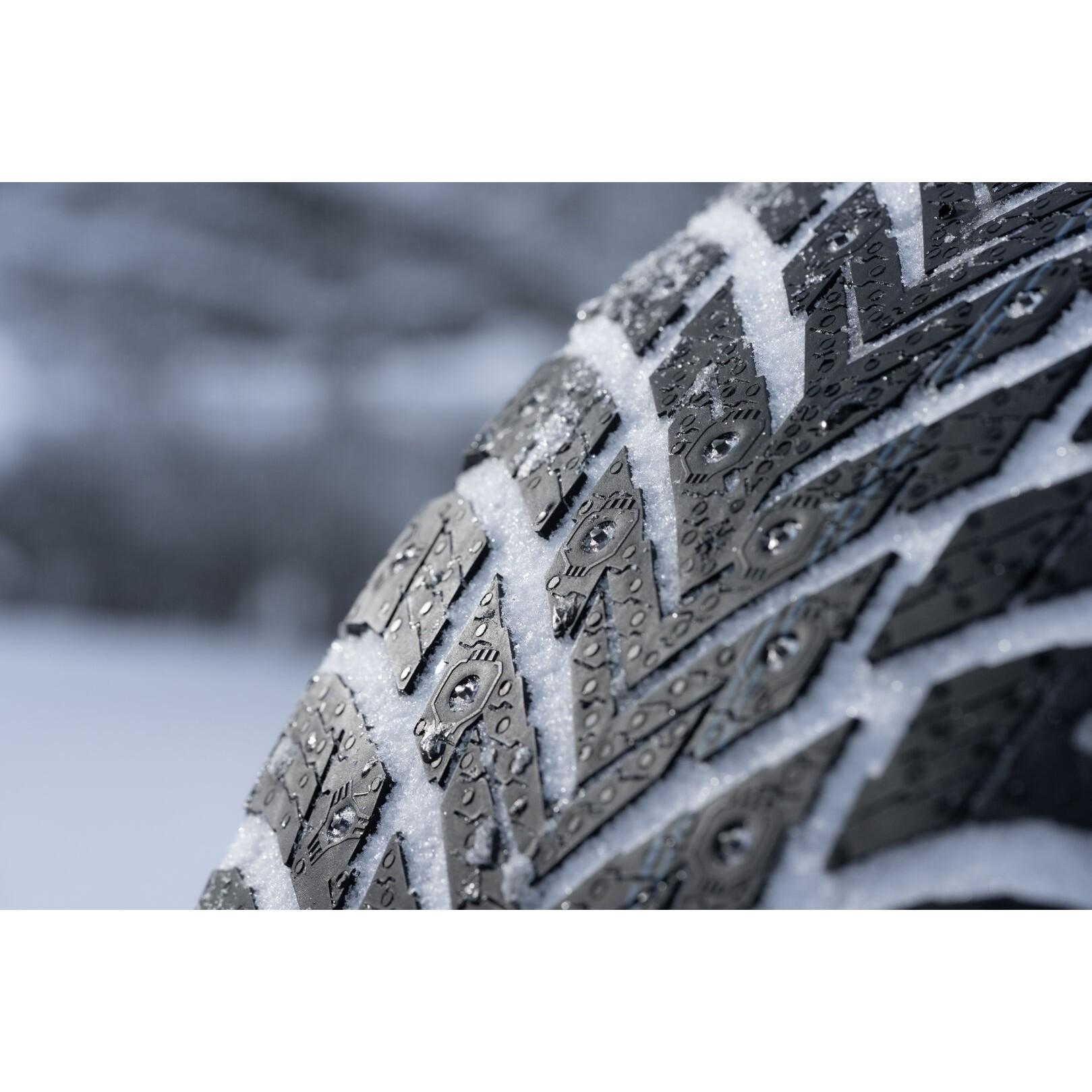 - замечательное сцепление с дорожным полотном на льду и снегу вне зависимости от нагрузок благодаря надёжным шипам;