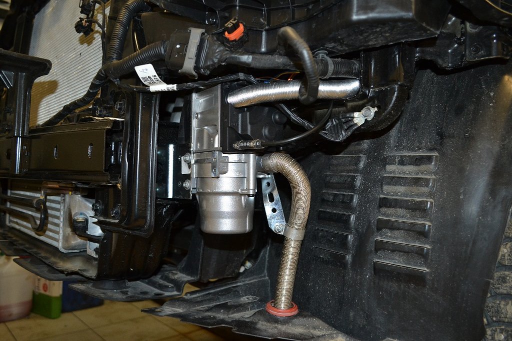 - Подключение и перенаправление выхлопа через глушитель и к блок стояночного обогревателя