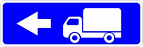Знак ставится с таблицами 8.3.1 — 8.3.3: запрет поворота направо, запрет движения налево, запрет движения в обе стороны. Знак 3.4 «Движение грузовых автомобилей запрещено» – круг с ободком красного цвета со схематично изображенным грузовым автомобилем.