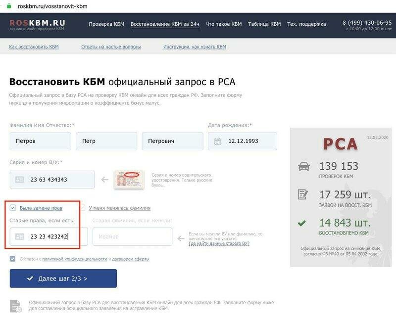 Первое, что нужно сделать, это проверить, не менялось ли водительское удостоверение за последние несколько лет. Так как данные о Кбм передаются на основании уже закончившихся полисов, в базе АИС РСА может быть запись о водителе со старыми правами. Если водительское удостоверение менялось, проверьте кбм, указав старые серию и номер прав. Серию и номер старых прав вы можете найти на обороте водительского удостоверения.