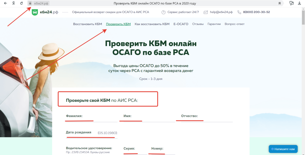 - Проверьте кбм. В результатах проверки вы увидите кнопку «Не устраивает кбм? Восстановим». Наши специалисты сделают всю работу за вас, и в течение 1-5 дней ваш кбм будет восстановлен и вы сможете оформить полис ОСАГО с положенной скидкой или запросить возврат излишне уплаченной страховой премии в вашей страховой компании.