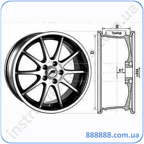 7.5 Jx16, первая тройка, информирует нас о том, что W – ширина обода этого диска – составляет 7,5 дюймов (необходимо помнить, что именно в дюймах указываются почти все параметры дисков: 1 дюйм = 2,54 см), D – диаметр – составляет 16 дюймов, а также, что данный диск является не штампованным/неразъемным («х» – значок литых и кованных дисков).