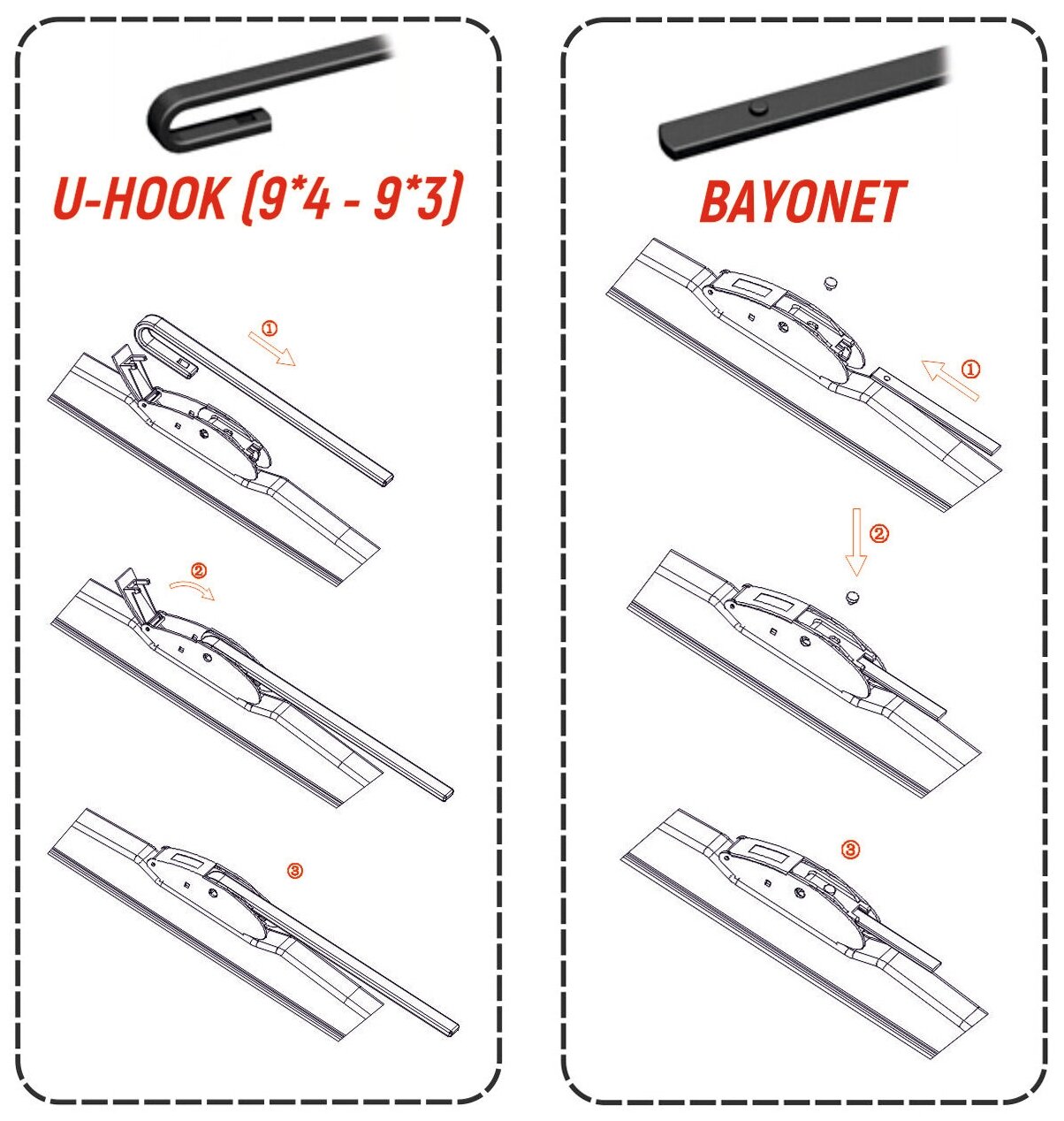 Эти типы щеток стеклоочистителя оснащены полным спойлером, который проходит по всей длине щетки.Это помогает удерживать лезвие ближе к ветровому стеклу на более высоких скоростях и обычно предназначено только для стороны водителя. Опять же, они обычно крепятся к транспортному средству с помощью крючкового крепления рычага стеклоочистителя.