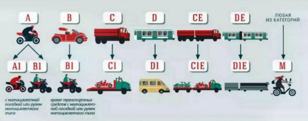 Новая категория «М», введенная 5 ноября 2013 года, позволяет управлять скутерами, мопедами и легкими квадрициклами (с объемом двигателя не более 50 кубических сантиметров).