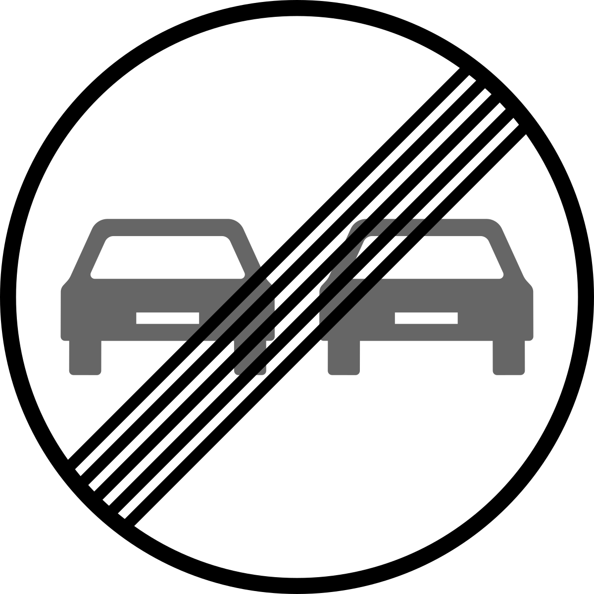 - Изображение дорожного знака «Конец зоны всех ограничений».