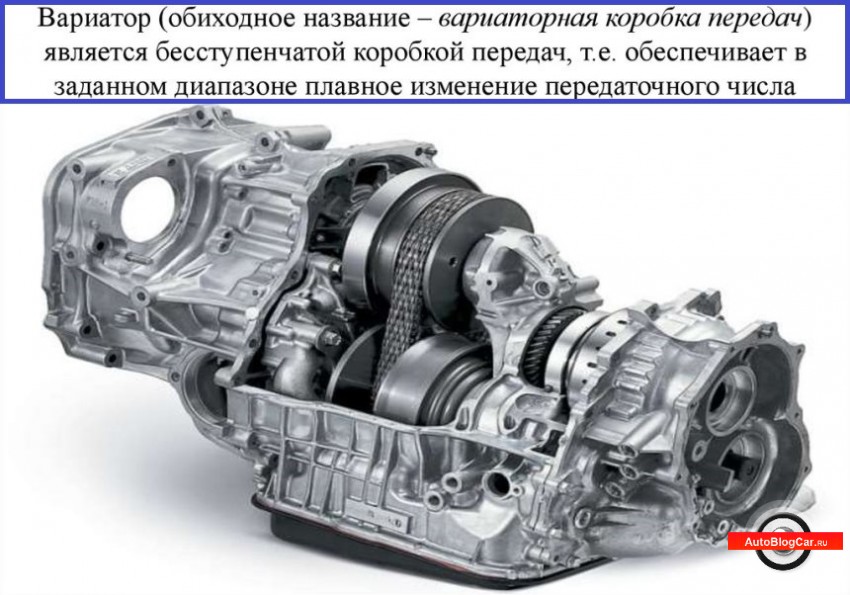Бесступенчатые трансмиссии (CVT) обеспечивают плавное изменение передаточных чисел. Наибольшее распространение получили клиноременные вариаторы с одной ременной передачей. Клиновидный ремень соединяет два шкива. Сдвижением и раздвижением стенок конических дисков достигается изменение диаметра шкивов. За счет плавного изменения передаточных чисел, водитель не ощущает смену передач.