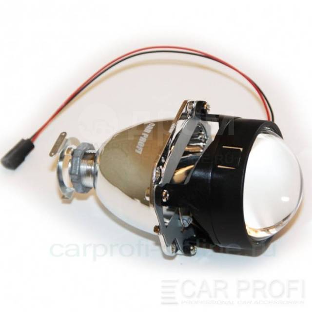 Изделие обеспечивает два луча света на режим ближнего и дальнего, за счет подвижности шторки. Характеризуется целенаправленным, четким и ярким потоком света, который однородно заливает автомобильную трассу. Обладает диаметром в 2,5 дюймов и красиво вписывается в экстерьер автомобиля. Подходит для ксеноновых ламп с мощностью в 35Вт.