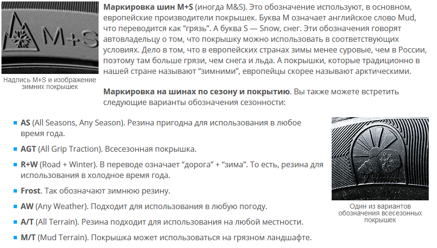 Маркировка M+S может также присутствовать на шинах для внедорожников 4×4 независимо от сезона.