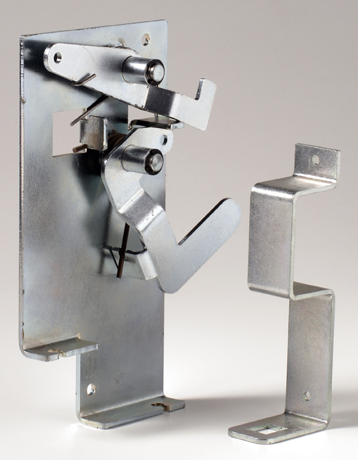 Затем рычажный механизм освобождает опору, освобождая замыкающую пружину.