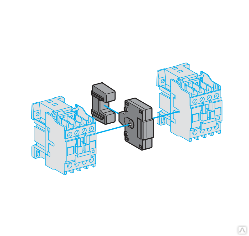 Устройство механической блокировки LAEM1 предназначено для исключения одновременного срабатывания контакторов LC1E при сборке реверсивных пускателей
