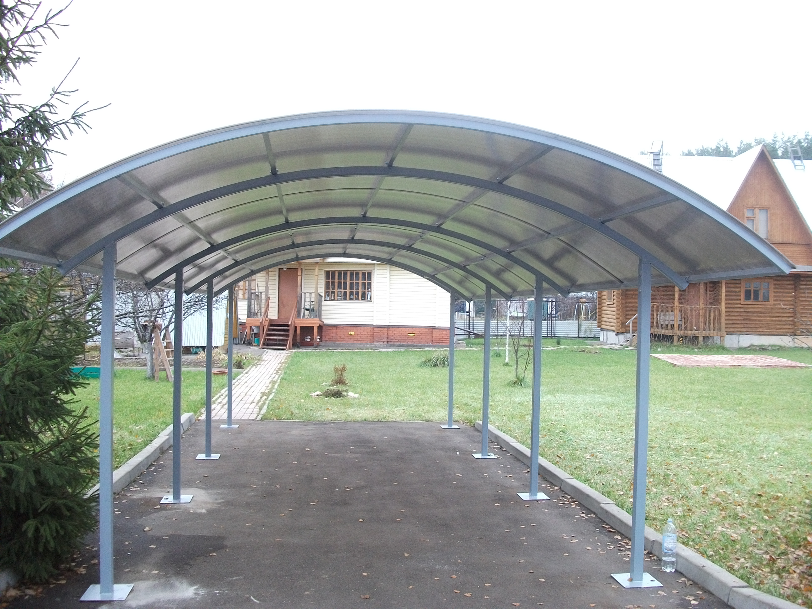 Навес для машины (автонавес) может использоваться как самостоятельная конструкция для стоянки автомобиля на дачном или приусадебном участке. Поликарбонат: