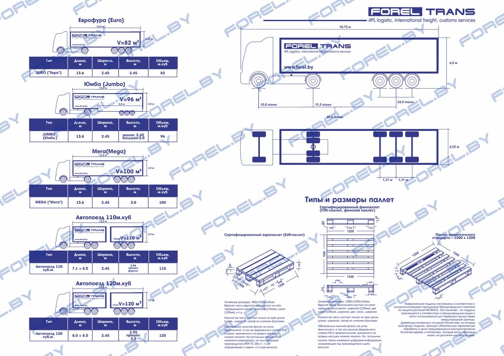 Габаритные размеры основных типов грузовых автомобилей, размеры фуры, сколько палет вмешается в фуру, размеры газели, размеры кузова грузовика,Перевозка грузов из Европы, RIC-Logistic Международная Транспортно