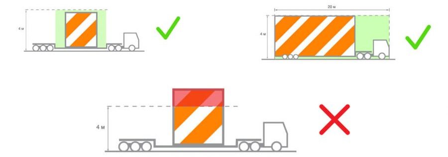 Для ограничения движения габаритного транспорта на данных участках выставляется знак «Ограничение высоты». И если высота транспортного средства (как с грузом, так и без такового) превышает установленный знаком предел, то проезд по данному участку дороги категорически запрещается.