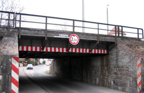 Вопросы безопасности допускают дублирование знака «Ограничение высоты» путем его установки непосредственно на боковой поверхности пролетного сооружения или инженерных коммуникаций.