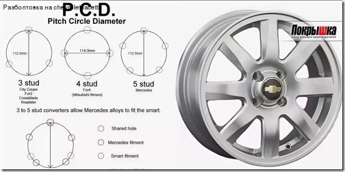 Если после всех произведенных вычислений вы получите дробное число, то округлять его следует в большую сторону. Но будьте внимательны, иногда производители не используют некоторые размеры разболтовок, например, Мерседес не допускает использование дисков с разболтовкой 111, поэтому если в ваших расчетах он получился именно таким, то выбирать следует маркировку 112.