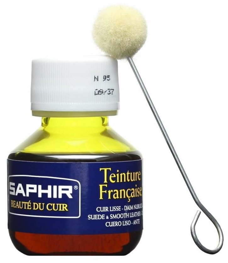 Перед первым использованием испробуйте средство на маленьком скрытом участке кожи. Если вы не смогли подобрать нужный цвет, смешайте несколько оттенков. Краситель Saphir – это верный способ ухода для гладкой кожи обуви.