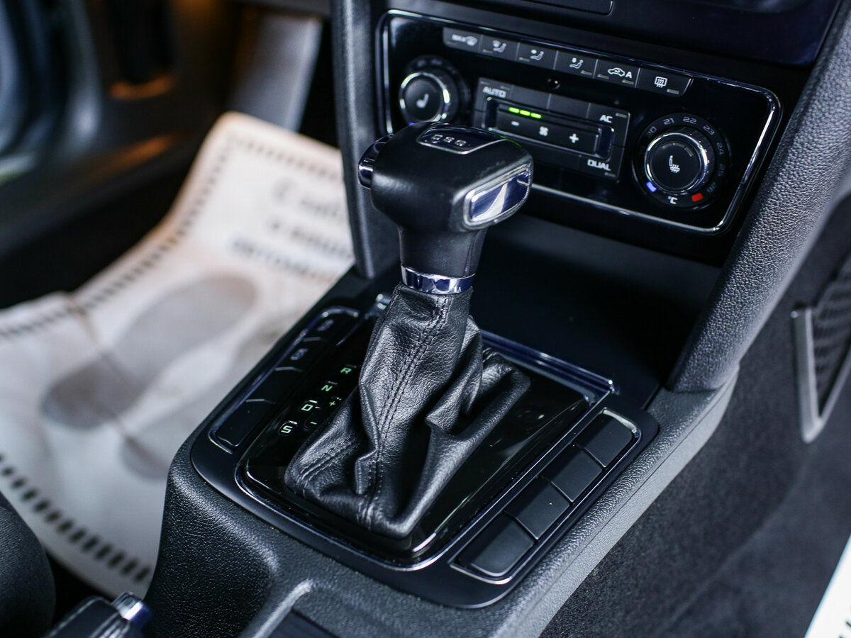 В более дорогих комплектациях на рычаге переключения скоростей, хромированная пластина есть, но без надписи DSG, и соответственно в начальных комплектациях этой пластины даже нет, как на фото выше слева.