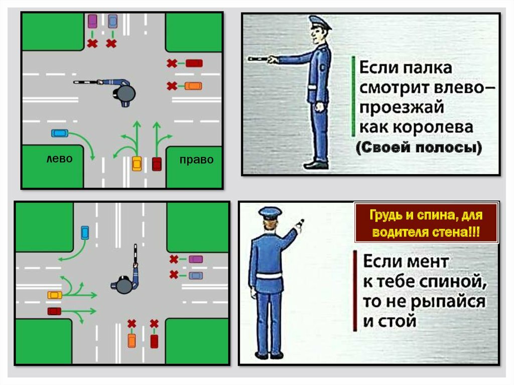 Насколько легко запомнить сигналы регулировщика кандидатам в водители и начинающим автомобилистам? «Палка направлена вверх — ей приказывают встать все.Это правило, изложенное в стихе, следует усвоить в первую очередь.