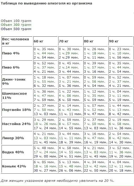 Важная информация для автомобилистов: время во всех таблицах является примерным. Например, в расчет не берется вероятность остаточного алкогольного опьянения, которое может произойти при употреблении некачественного спиртного или замедленного метаболизма человека.