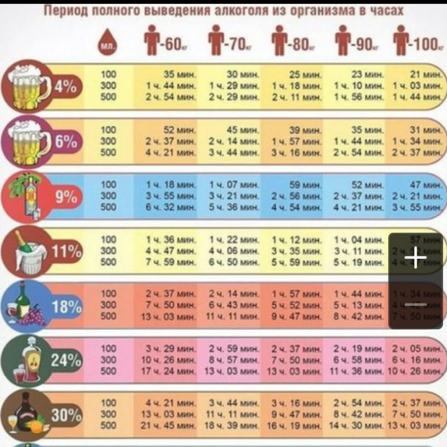 Время выведения алкоголя из организма, таблица сколько выветривается алкоголь