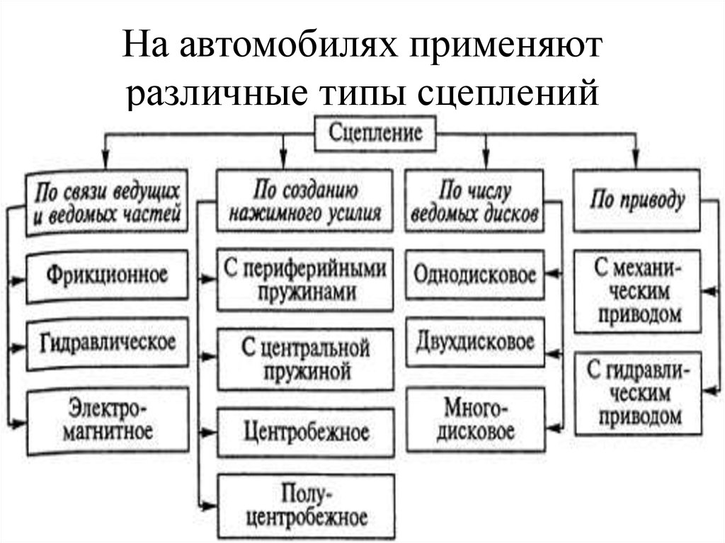 Самым распространенным типом сцепления является фрикционное сцепление. Различает следующие виды фрикционного сцепления