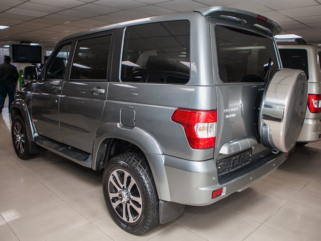 Благодаря модернизированным фонарям и новому колесному контейнеру заметно изменилась задняя часть УАЗ 2015. Стабильность автомобиля повышена за счет стабилизатора в задней части, неограниченного срока службы карданных валов, колес диаметром 16 или 18 дюймов.