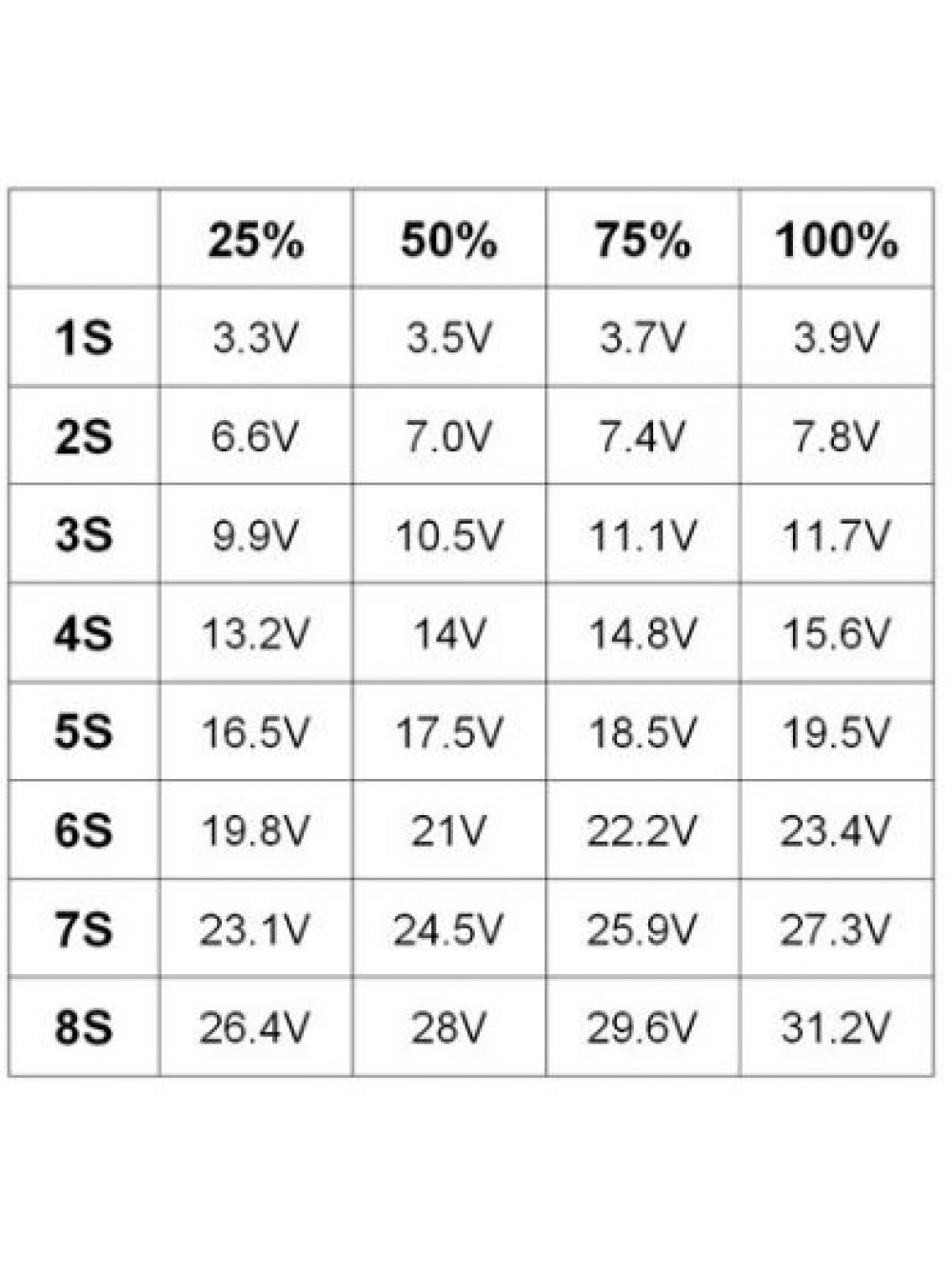 Зная о том, сколько вольт показывает измерительный прибор, нельзя узнать степень износа источника электрического питания. Однако определить примерный процент зарядки вполне реально. Для этого необходимо воспользоваться приведенной ниже таблицей.