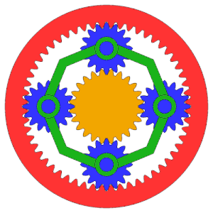Планетарный механизм — это конструкция из зубчатых колёс, перемещающихся относительно центра. По центральной оси расположены колёса разного диаметра: