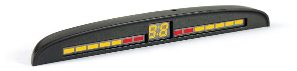 Устройства с экраном-шкалой так же указывают сторону расположения и расстояние до самого близкого препятствия. Но дальнобойность такого вида парктроников на авто не превышает 2,5 метров.