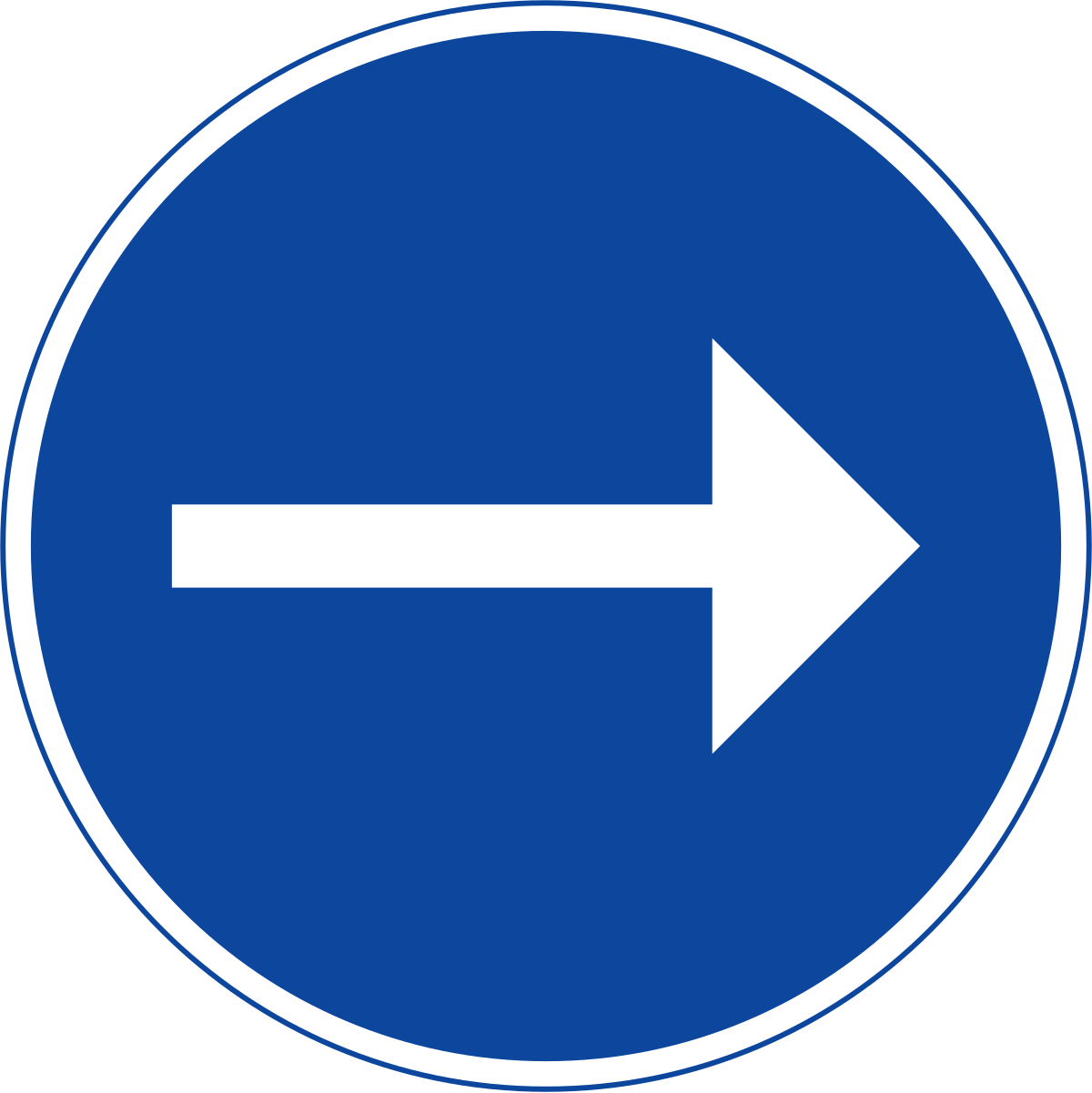 Этот знак указывает водителю повернуть только направо, для этого может быть какая-либо причина, но выполнение этого сигнала приведет к безопасности и беспроблемному вождению.