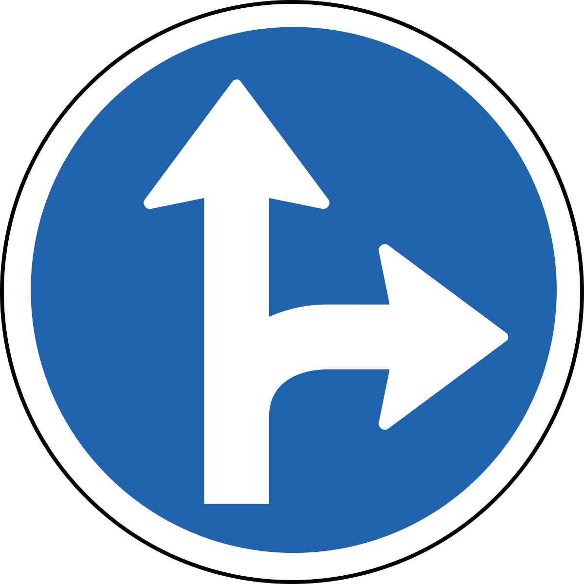 Этот знак используется на перекрестках с круговым движением, где необходимо соблюдать определенную полосу движения. Этот знак направляет движение транспорта, чтобы уступить дорогу другим машинам с правой стороны.