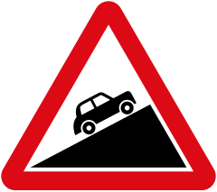 Этот дорожный знак указывает на то, что впереди крутой спуск, и водитель должен приготовиться к спуску, включив соответствующую передачу.На спуске не следует пытаться ускориться, так как это ослабит сцепление с дорогой. В большинстве случаев эти знаки находятся на холмистой дороге, где крутые подъемы и спуски являются нормальным явлением.