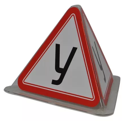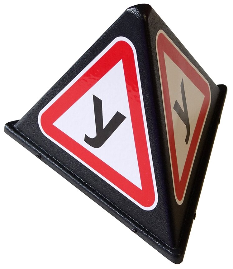 У нас вы можете выбрать и купить односторонний треугольный знак на магнитопласте, который можно прочно закрепить на любой металлической части автомобиля.