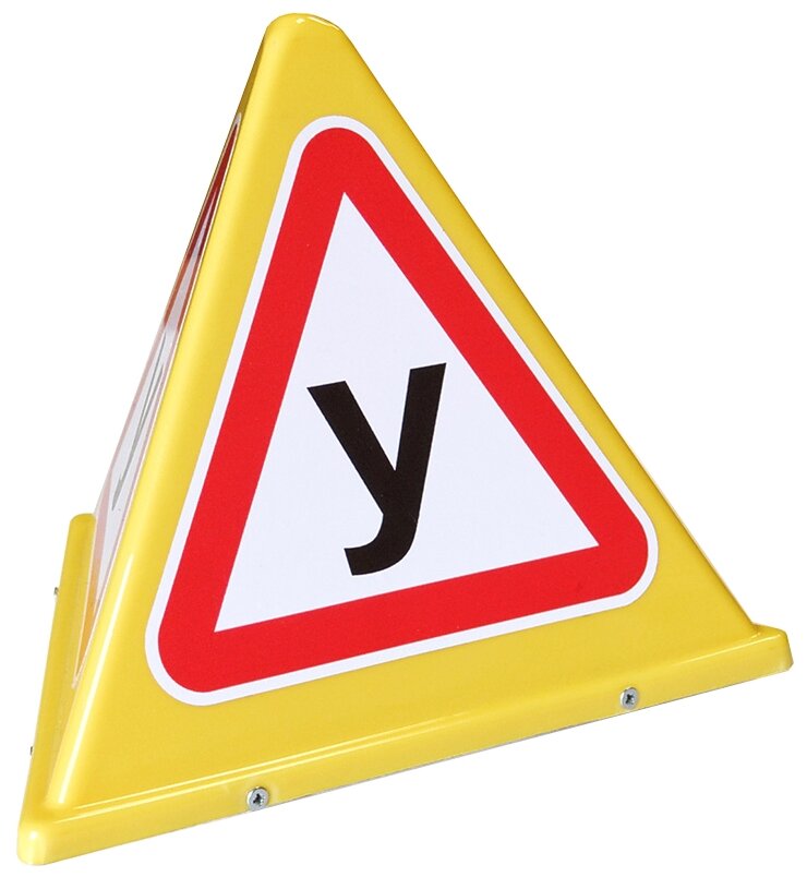 Знак учебный автомобиль устанавливается, согласно действующему законодательству, только на ТС, предназначенных для обучения вождению. По форме это треугольник с равными сторонами. В центре расположена черная буква У. Сам треугольник делается белого цвета, по краям знака идет обрамление – красная кайма. Место установки – спереди, сзади авто. Двусторонний знак У можно закреплять на крыше ТС.