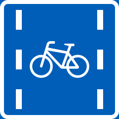 Велосипедная дорожкаТрасса, выделенная специально для велосипедов и скутеров, помечается знаком «велосипедная дорожка». Участок действия знака «велосипедная дорожка» может иметь любую продолжительность. Конец специальной велодорожки также отмечен специальным знаком, на котором дорожный знак велосипедная дорожка перечеркнут красной чертой.
