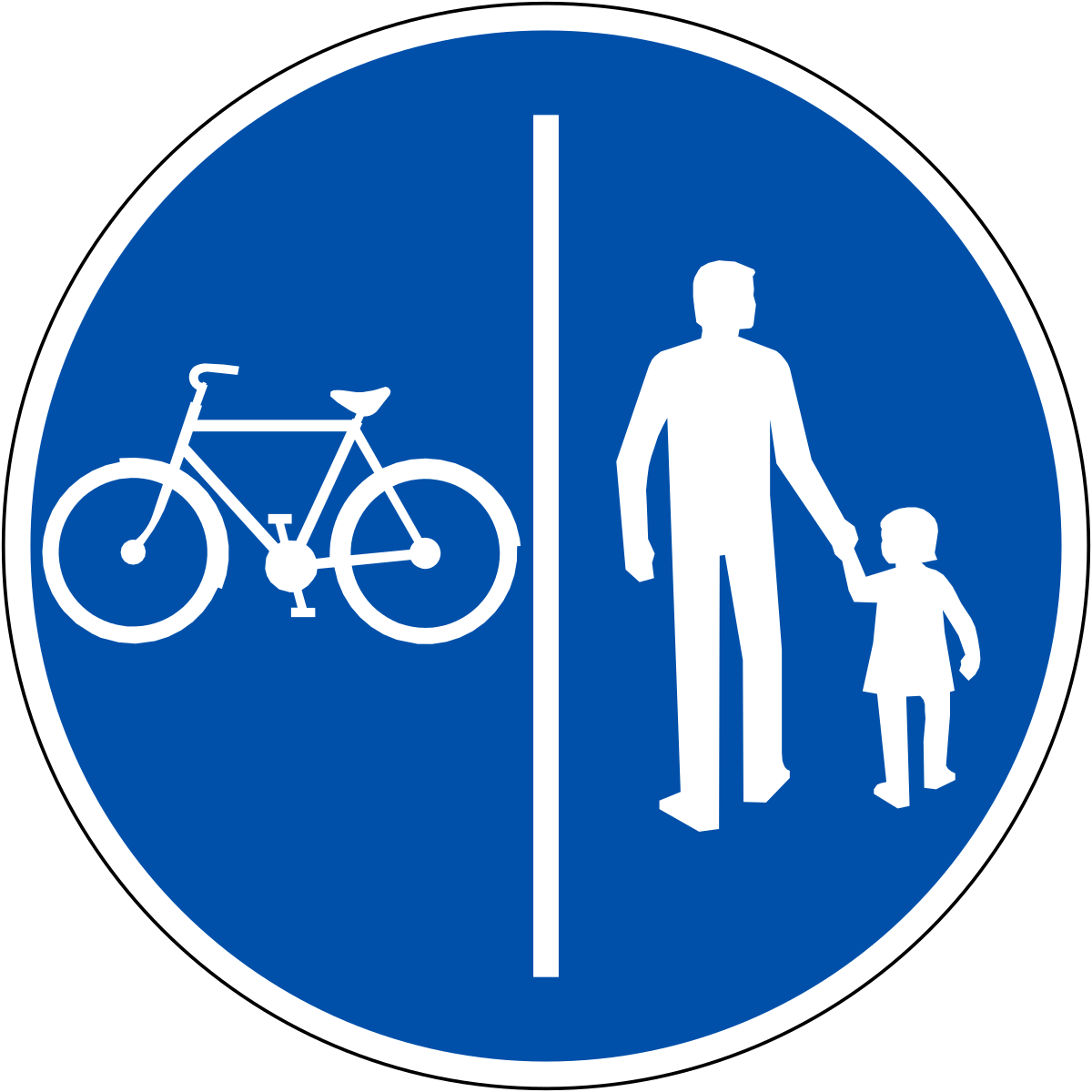 Иногда мы можем составлять и пешеходы, тогда дорожка будет изображена знаком, на котором изображены оба участника движения.