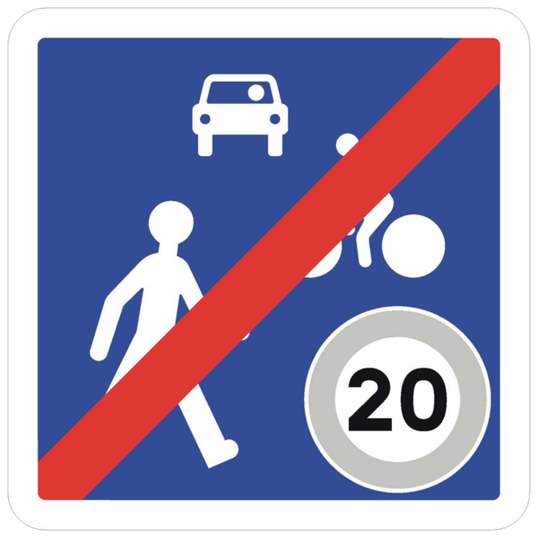 5) знак 385 Зона велосипедного движения обозначает зону действия, в которой разрешено движение на велосипедах, электрических двухколесных самокатах, мопедах и мини-мопедах. Если позволяет интенсивность движения, то в названной зоне разрешается передвигаться также пешеходам без создания помех движению на велосипедах, электрических двухколесных самокатах, мопедах и мини-мопедах. Конец зоны действия, установленной знаком 385, обозначается знаком 395 Конец зоны велосипедного движения;
