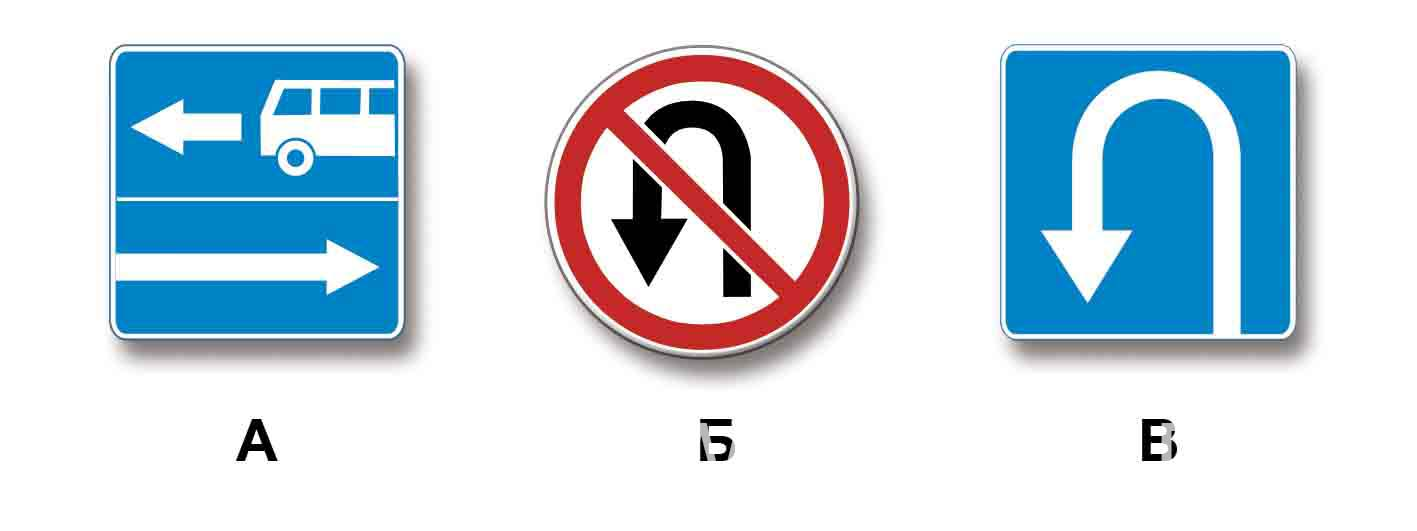 13.1 «Выезд на дорогу с полосой для маршрутных транспортных средств» (знак А) устанавливают перед выездом на дорогу, на которой общий поток ТС движется слева направо, а маршрутные ТС по своей полосе — справа налево. По полосе для маршрутных ТС движение других ТС запрещено ( п. 18.2 ). Таким образом, повернуть налево на перекрестке, перед которым установлен знак 5.13.1 , нельзя. Знак [3.19] «Разворот запрещен» (знак Б) запрещает только разворот, поворот налево при этом возможен. Знак 6.3.1 «Место для разворота» (знак В) указывает на участке многополосной дороги между перекрестками место для разворота. При этом поворот налево в этом месте, например во двор, запрещен.