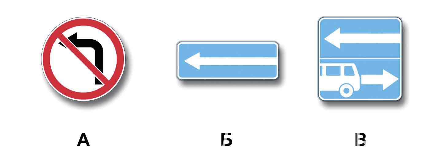 Какие знаки запрещают поворот налево? 1. Только А.